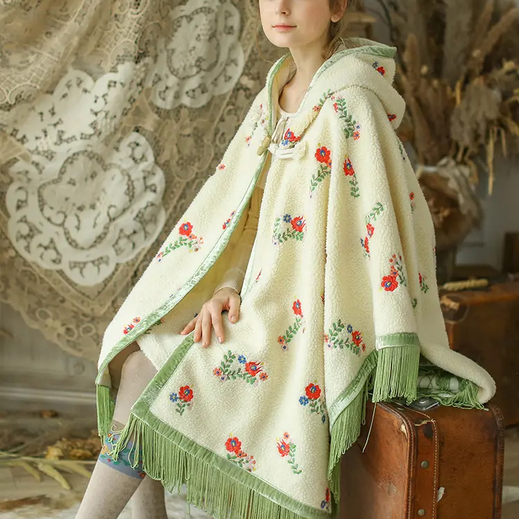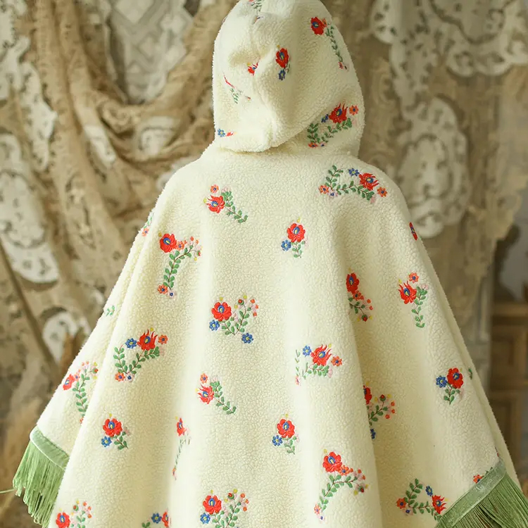 Season:Winter Hooded:Yes Sleeve Style:Batwing Sleeve Closure Type:Single Button Collar:V-Neck Pattern Type:Floral Decoration:Embroidery Material:Polyester Color:As shown High-concerned Chemical:None Size:S-2XL..