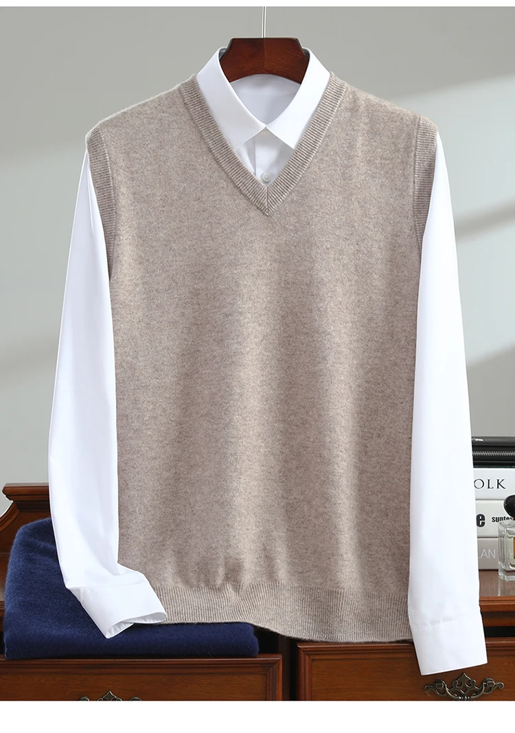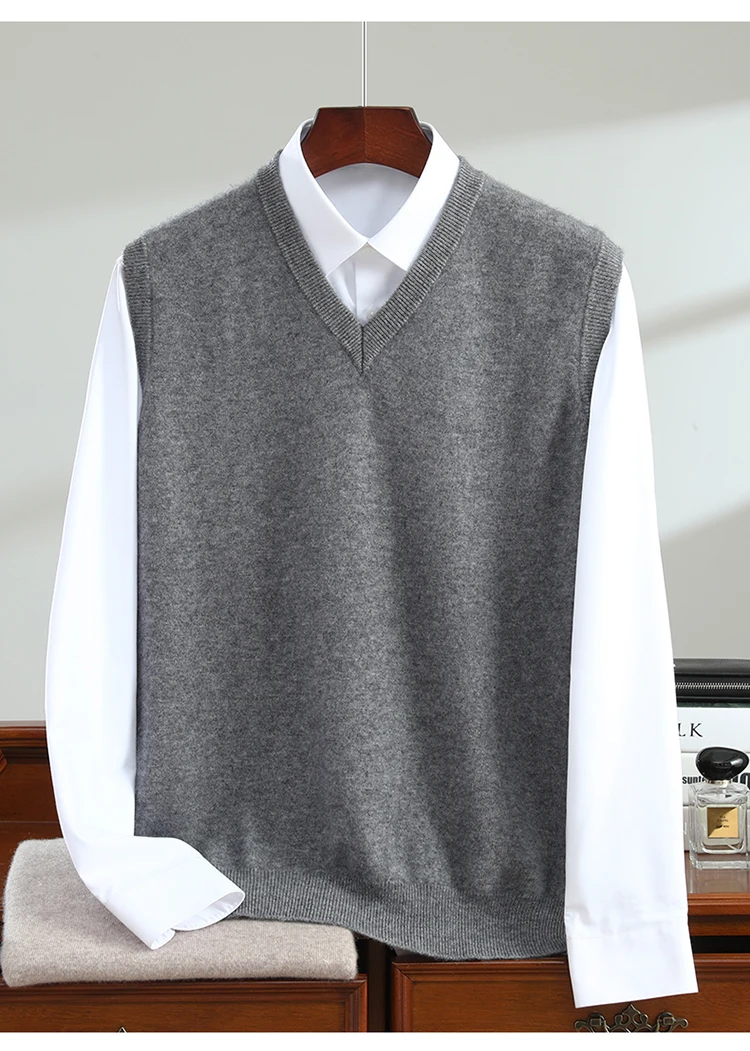 High-concerned Chemical:None Color:As Shown,Gray,Navy-blue Craft of Weaving:Knit Size:S-XL Pattern Type:Solid Sleeve Length(cm):Sleeveless Material:Wool Collar:V-Neck Style:Casual Gender:Men..