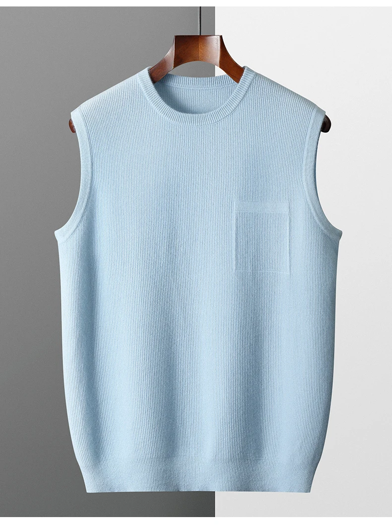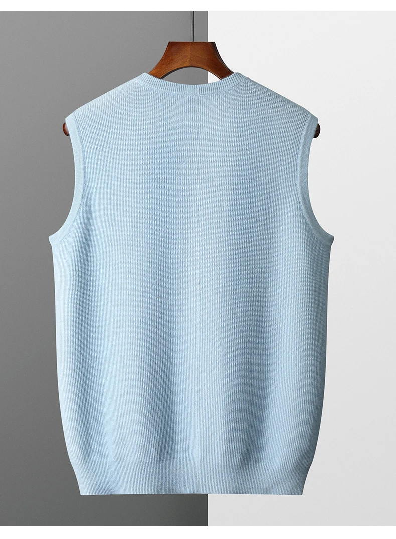 High-concerned Chemical:None Color:As Shown,Light-blue Size:S-XL Pattern Type:Solid Sleeve Length(cm):Sleeveless Material:Wool Collar:O-Neck Gender:Men..