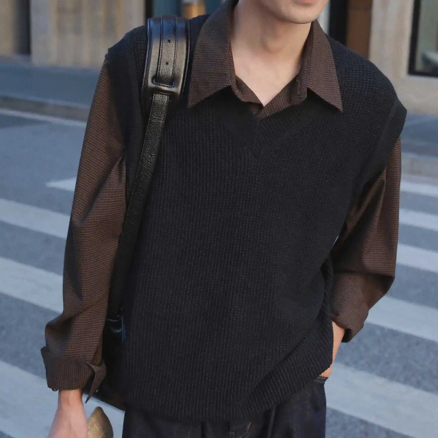 High-concerned Chemical:None Color:Coffee,Black Size:S-XL Craft of Weaving:Knit Pattern Type:Solid Sleeve Length(cm):Sleeveless Thickness:Standard Material:Wool Collar:V-Neck Gender:Men..