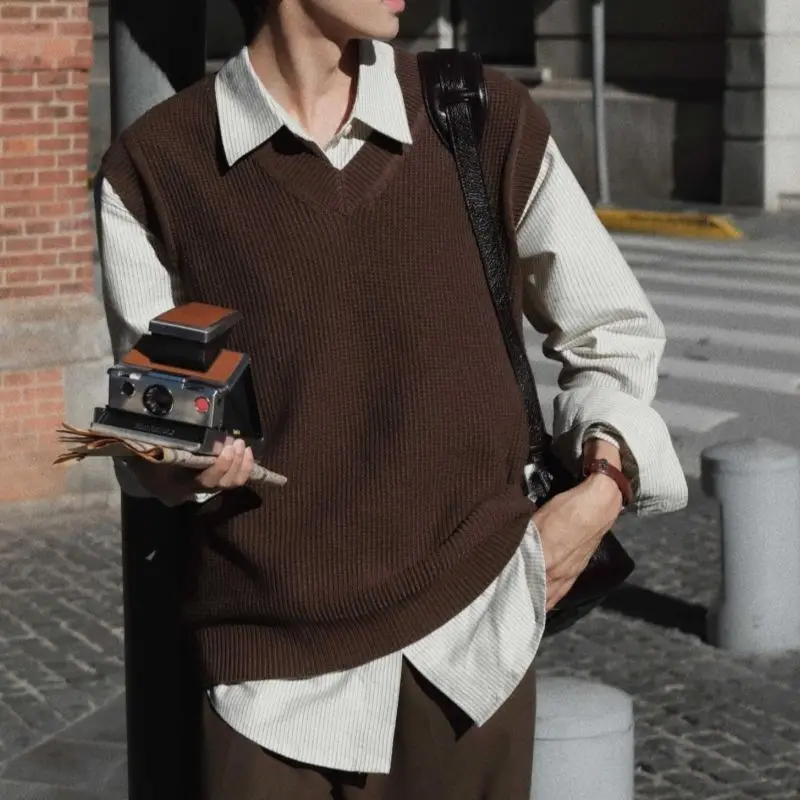 Vintage Sweater Vest for Men and Women V-neck Loose Solid Sleeveless Knitted Vest Sweater