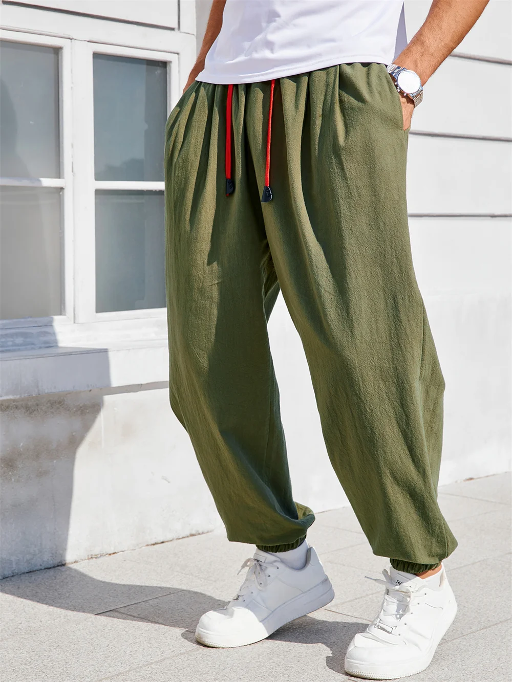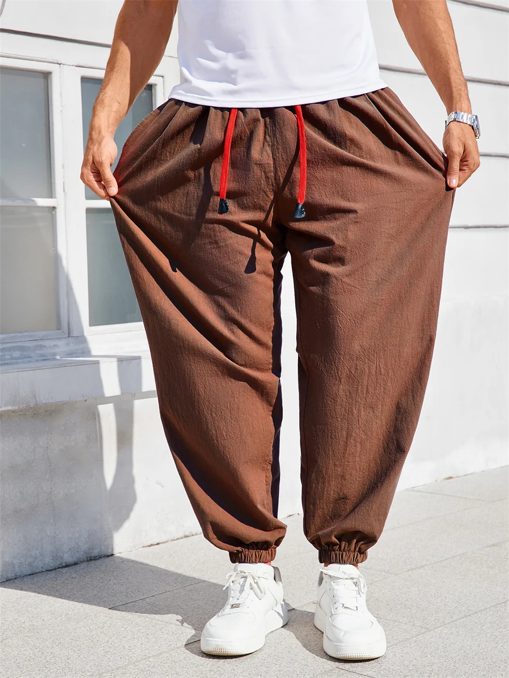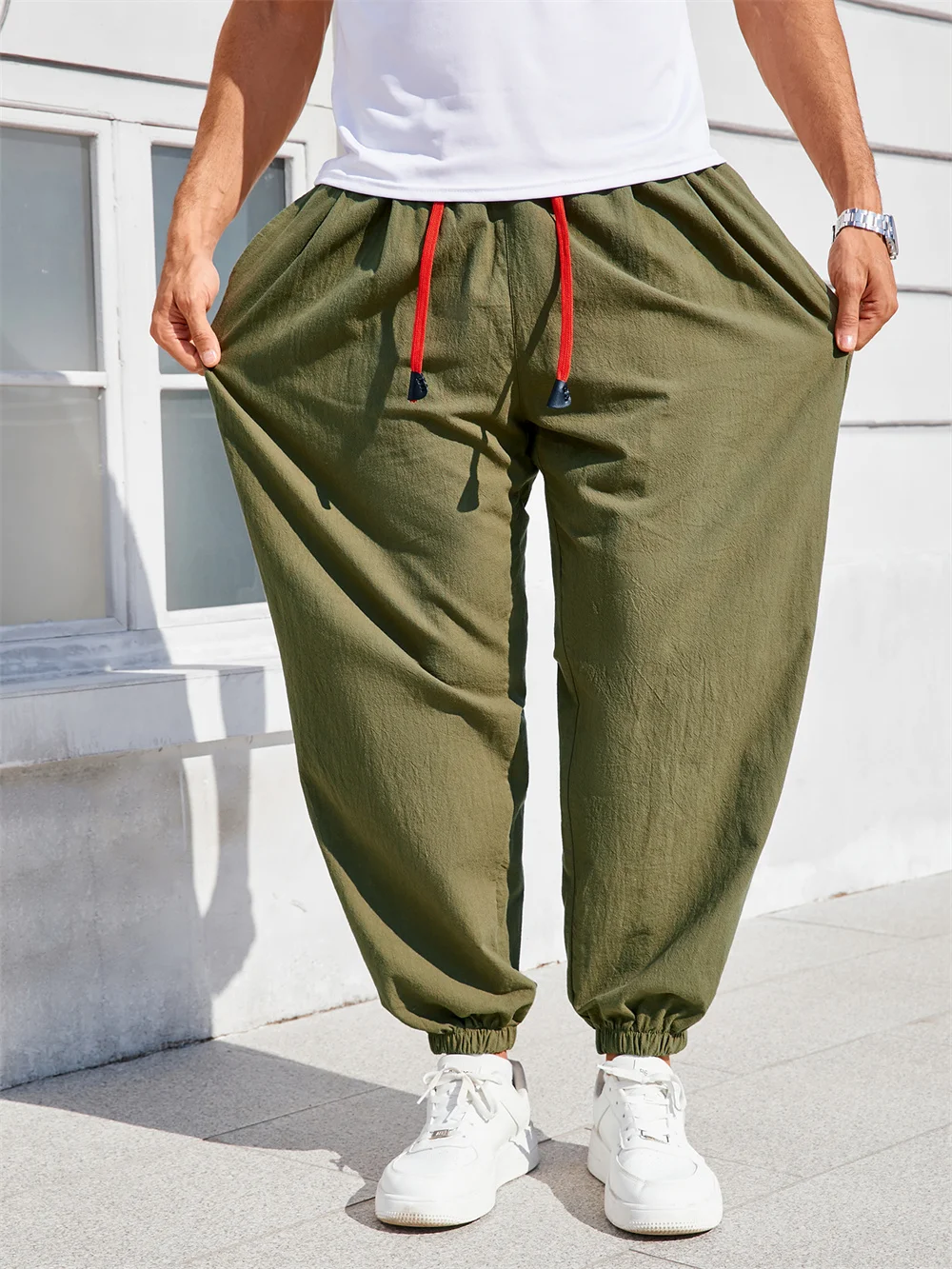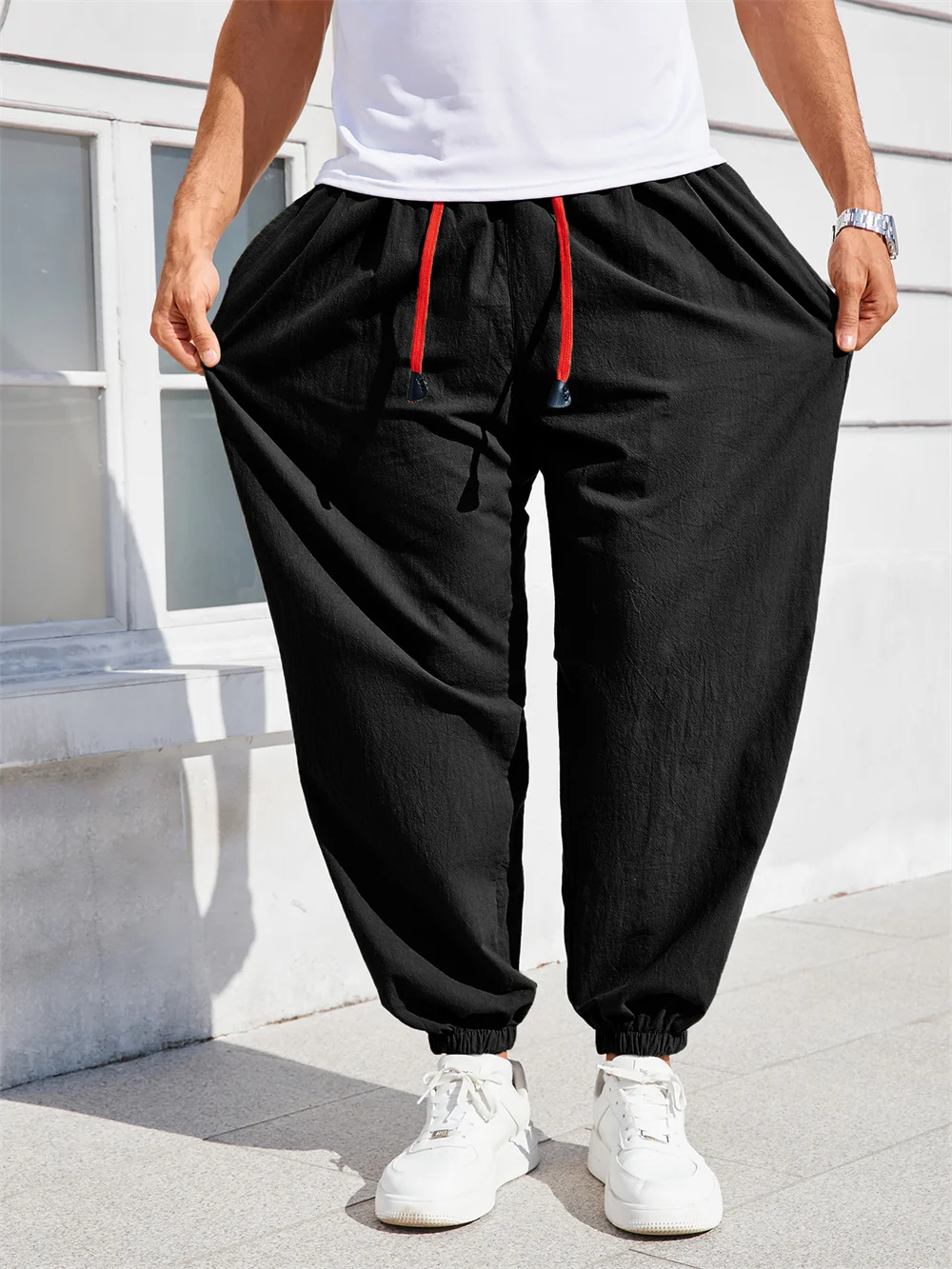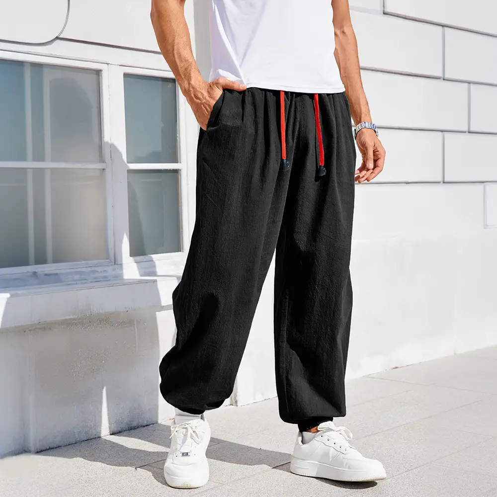 Men's Harem Pants Loose Fit Cotton Linen Solid Color Cozy Sweatpants Joggers Male Casual Trousers