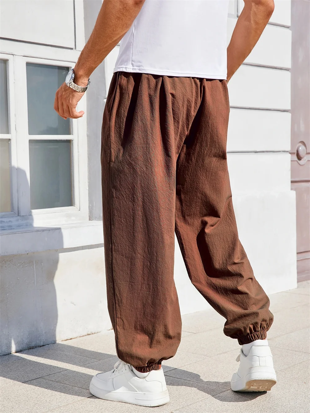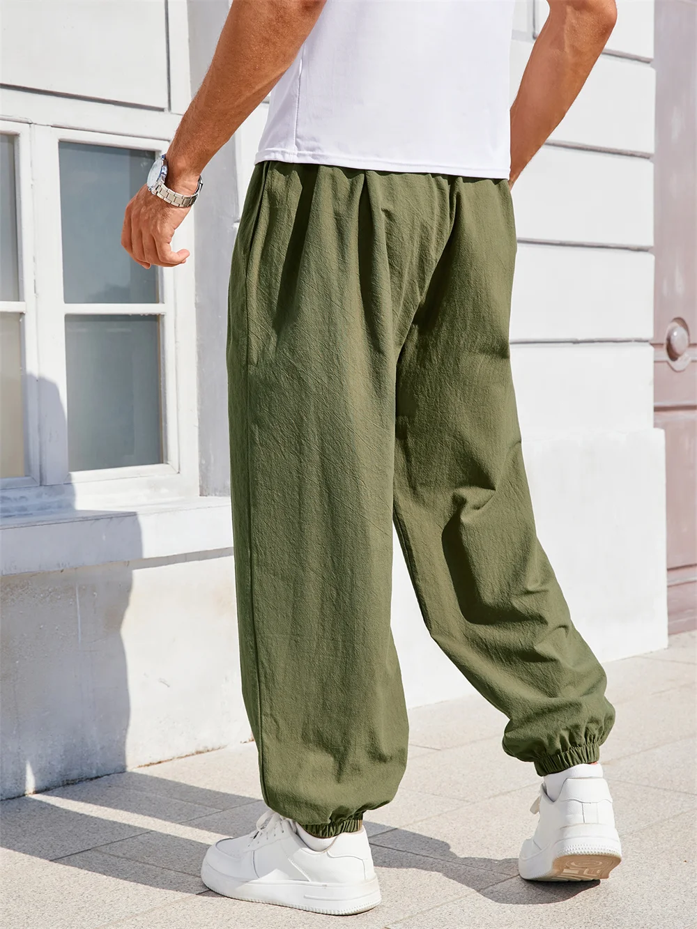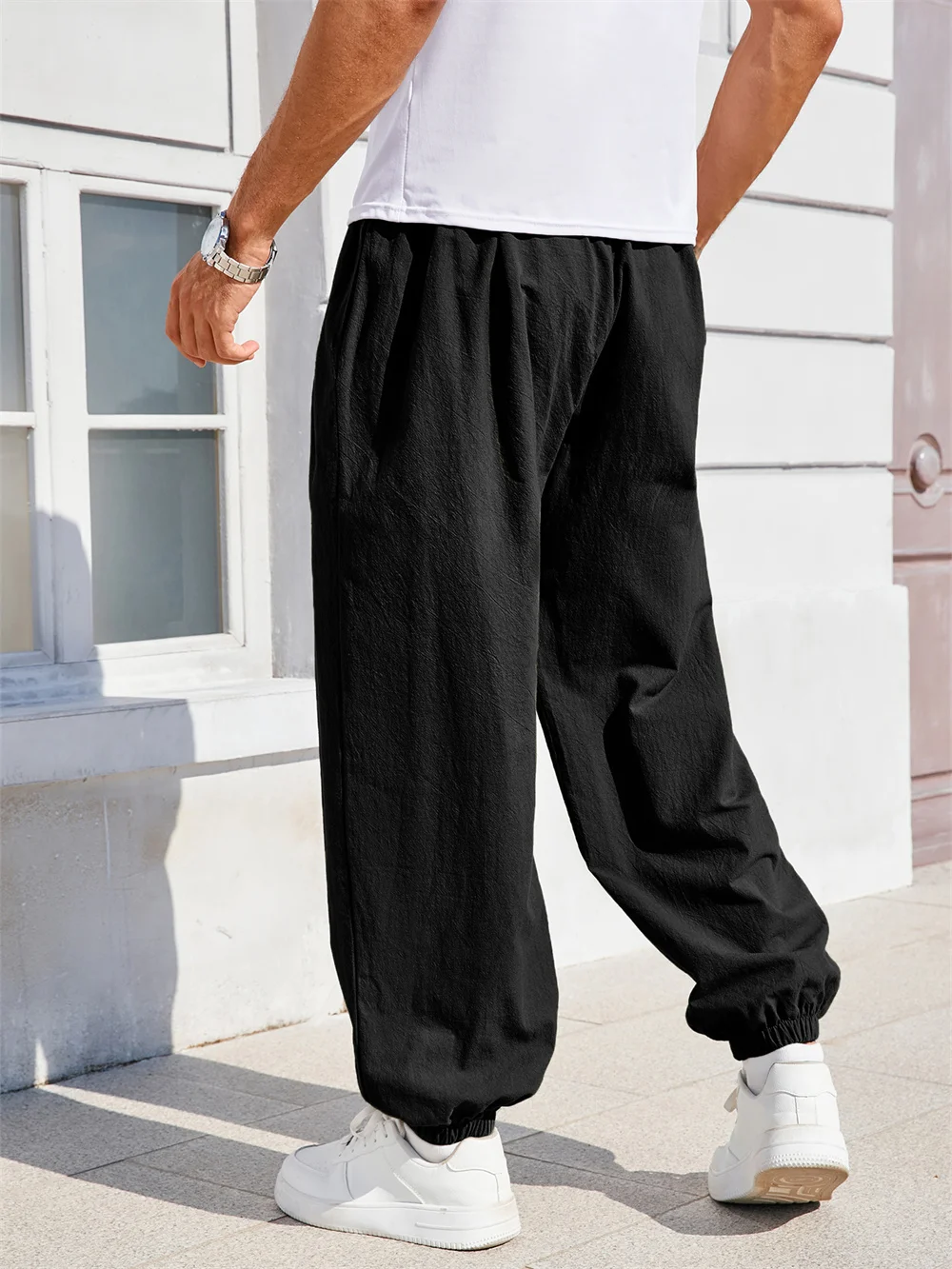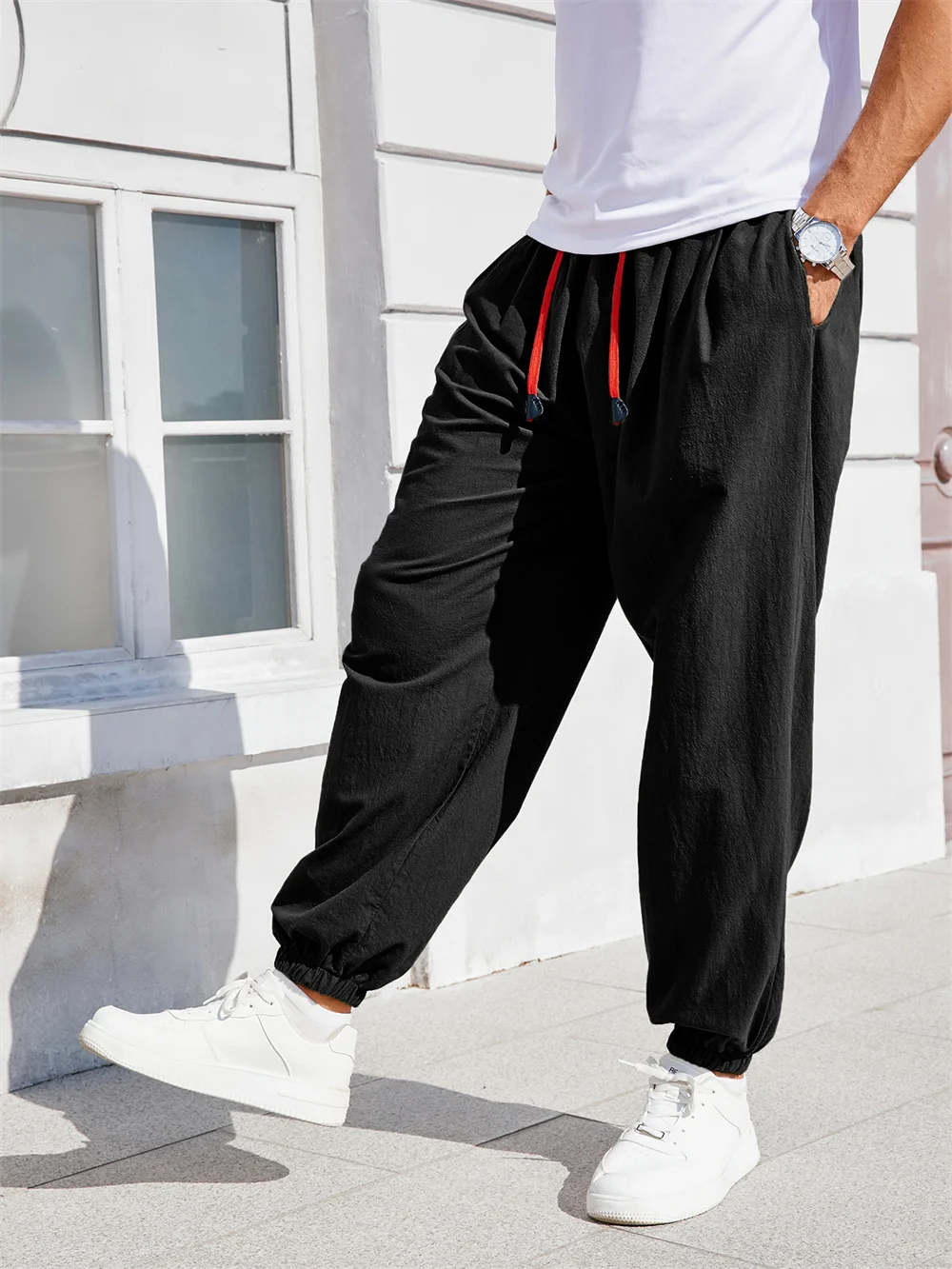 Men's Harem Pants Loose Fit Cotton Linen Solid Color Cozy Sweatpants Joggers Male Casual Trousers