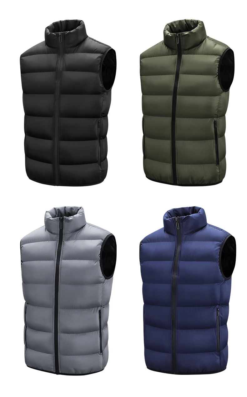 Thickness:Thick Applicable Season:Winter Style:Casual Closure Type:Zipper Pattern Type:Solid Hooded:No Collar:Stand-up Collar Style:Casual Material:Polyester Color:Black,Dark-blue,Dark-green,Gray Size:M-4XL Item Type:Outerwear & Coats Outerwear Type:Vest Gender:Men..