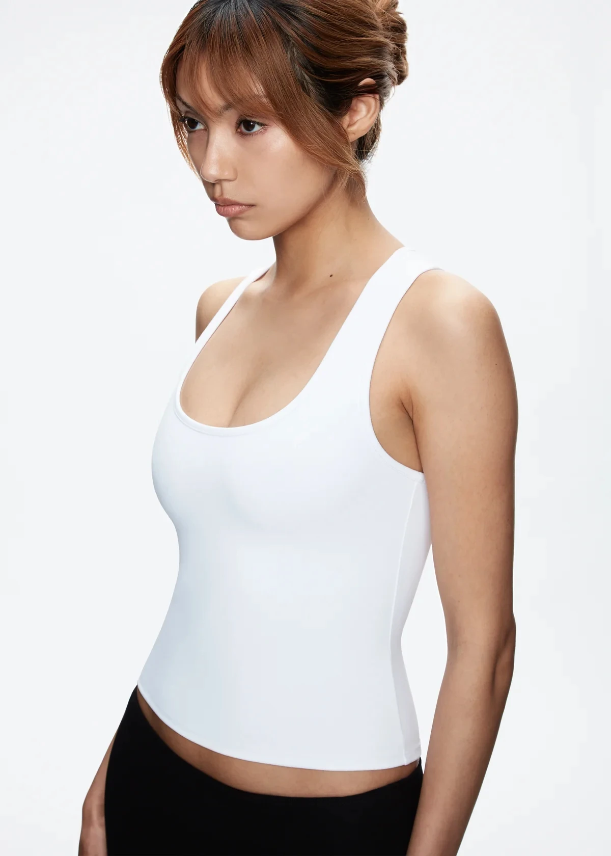 High-Concern Chemical Substances: None Style: Casual Pattern Type: Solid Color Type: Camisole Material: Polyester Gender: Female Elasticity: Medium Elasticity Color:White,Black,Light-pink Size:XS-M..