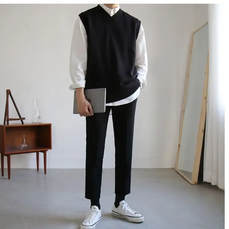 Color:Black Size:S-XL Craft of Weaving:Knit Sleeve Style:Regular Pattern Type:Solid Sleeve Length(cm):Sleeveless Thickness:Standard Material:Wool Gender:Men..
