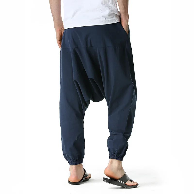Applicable Season:Spring,Autumn Applicable Scene:Daily Closure Type:Elastic Waist Front Style:Pleated Item Type:Full Length Thickness:Midweight Fit Type:Loose Style:High Street Material:Cotton,Linen Color:Beige,Black,Dark-blue,Gray Size:S-3XL Gender:Men Pant Style:Harem Pants..